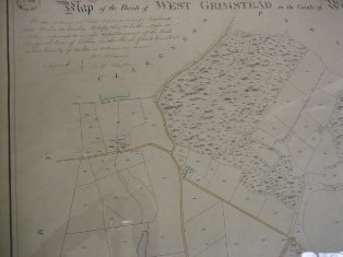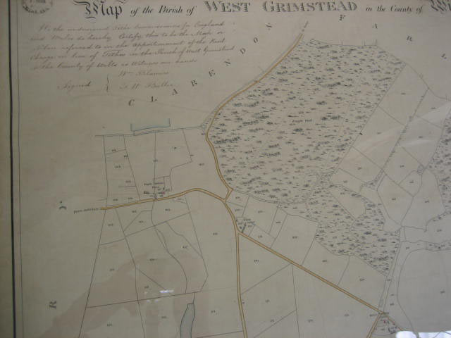 The 1838 Tithe map and schedule for West Grimstead are deposited at Wiltshire Record Office. They are in extremely good condition, but because of the size of the map and because it has been encased it a plastic covering to protect it, it is difficult to reproduce so I am only able to display small portions of this map.